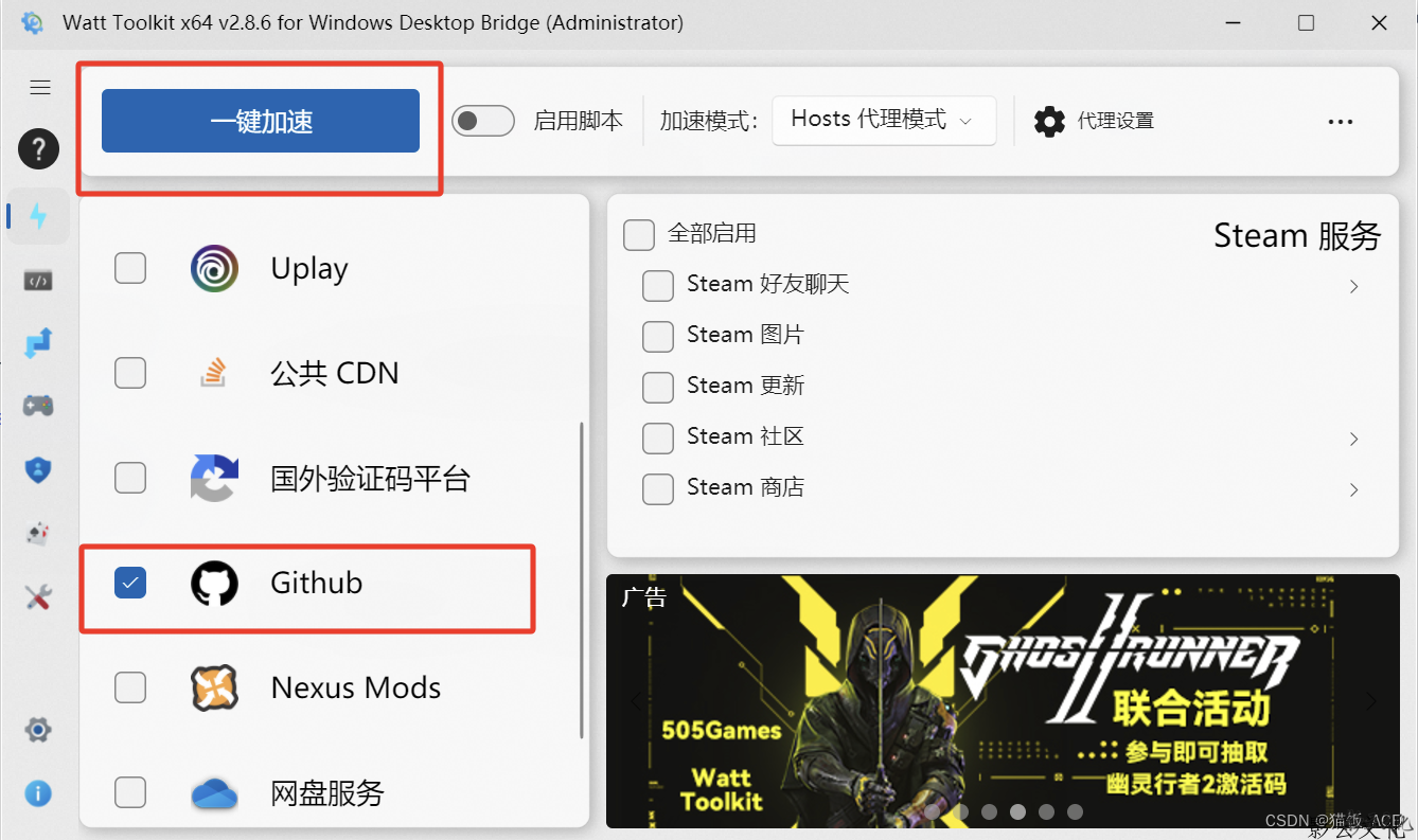 2、stream++(现在改名叫 Watt Tookit了)